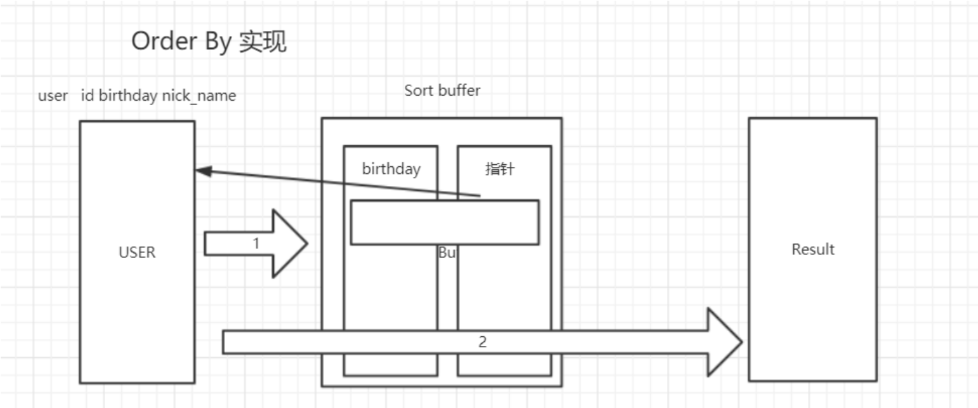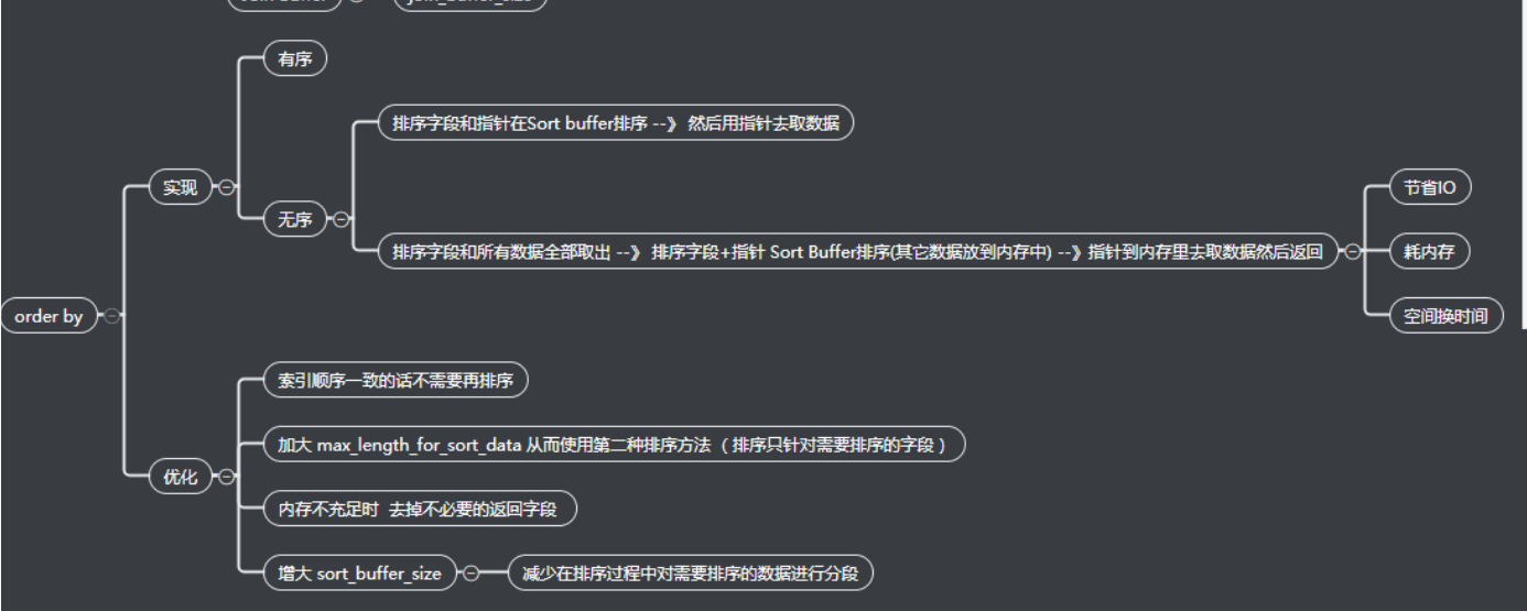 实现一:会把这列数据copy到缓存表中做排序,并且有个指针指向原来的数据,排序后就行指针回表查询,会有两次io